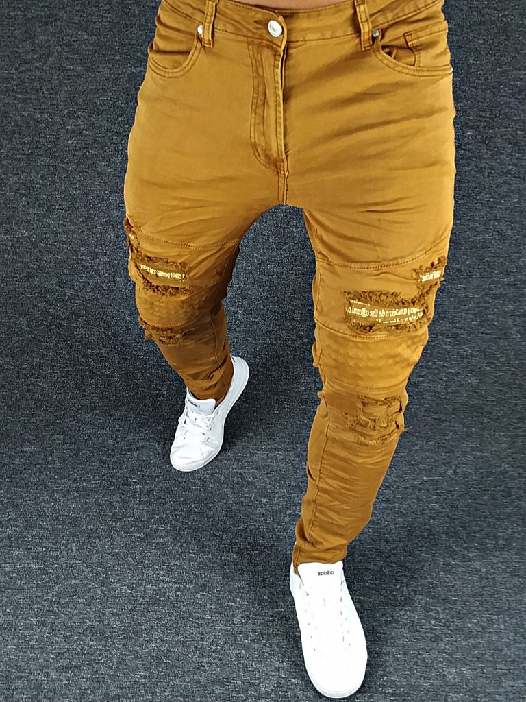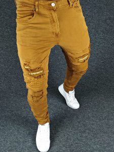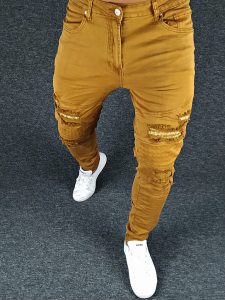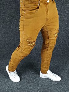 SPODNIE MĘSKIE JEANS PIASKOWY WSZYWKI NPI/J070