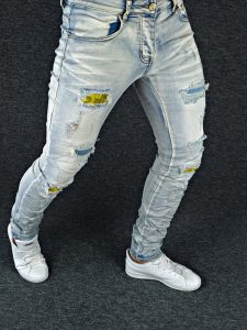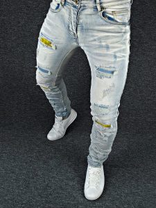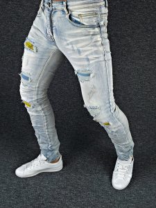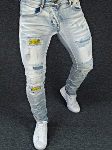 • spodnie ze stylowymi dziurami, przetarciami i naszywkami