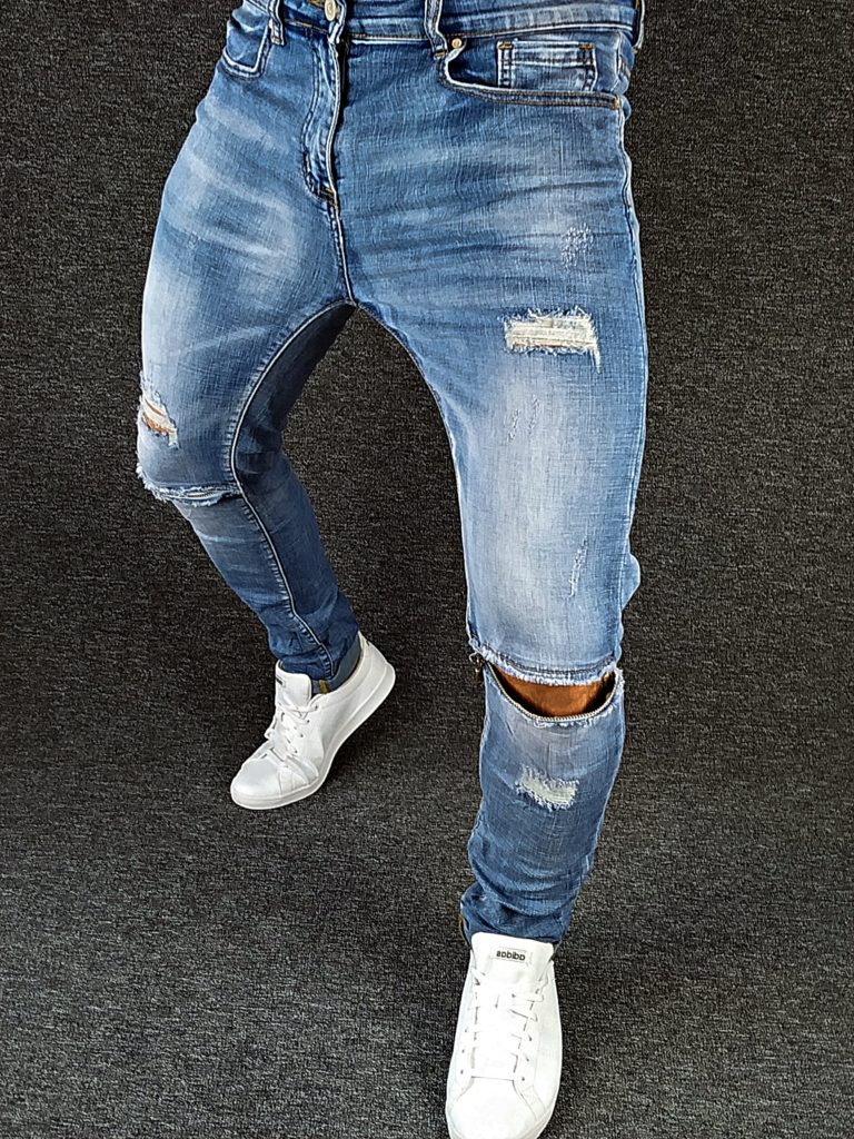 • spodnie ze stylowymi dziurami, przetarciami i naszywkami