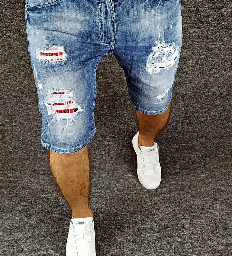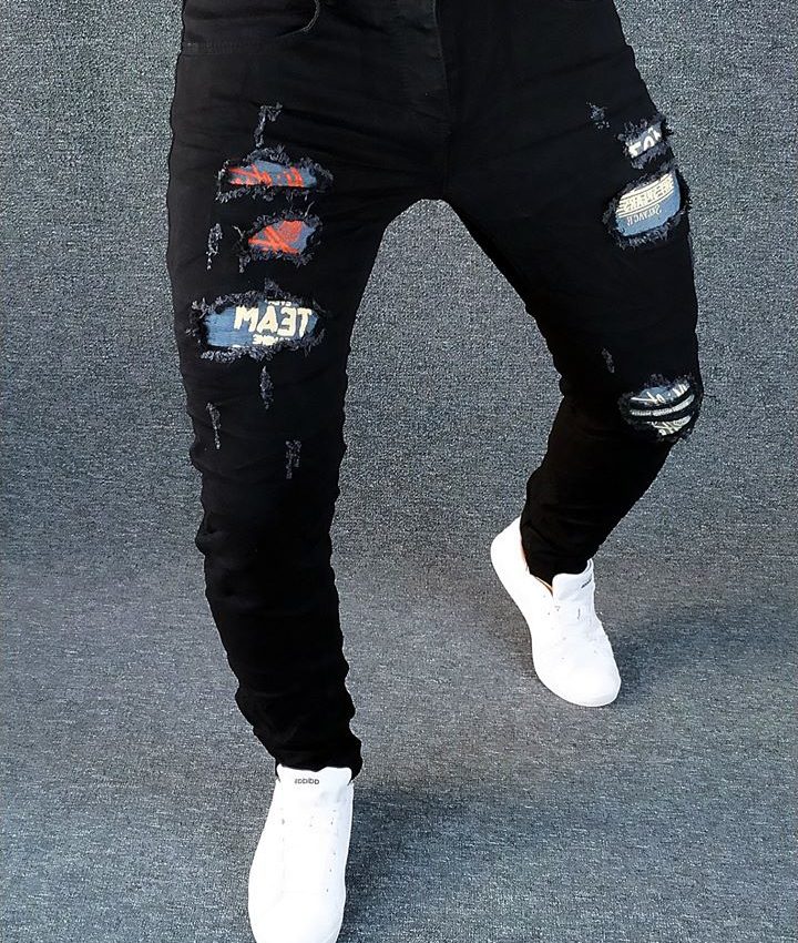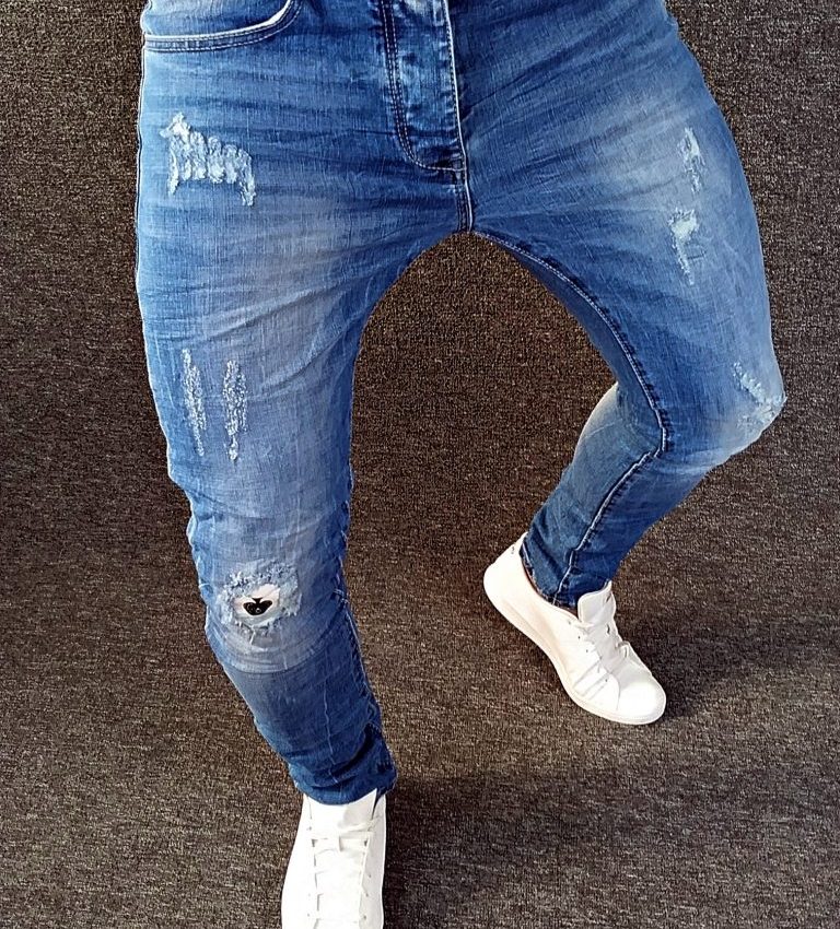 • spodnie ze stylowymi dziurami, wszywkami flagi UK